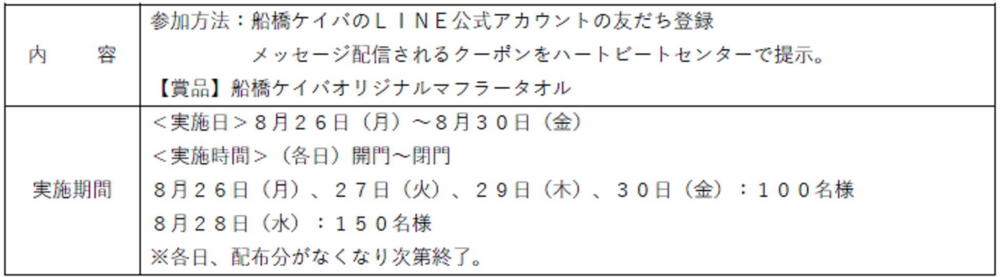 ※8月28日(水)のみ実施いたします。
