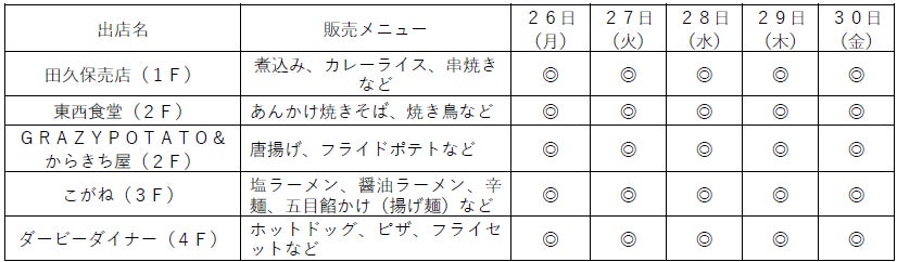 ※販売店:2階マリリン売店、4階ダービーダイナー