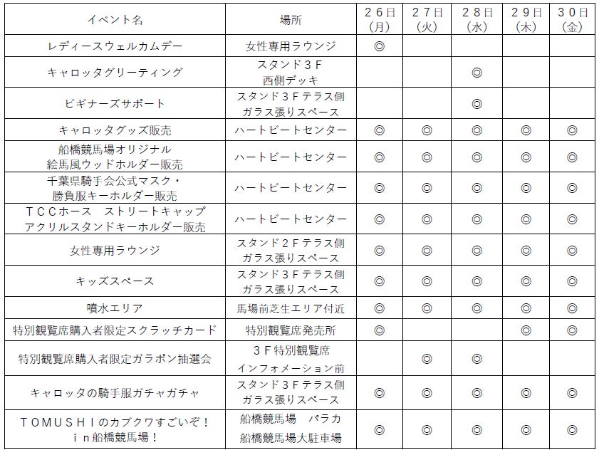 レディースウェルカムデーやキャロッタグリーティングなど女性やお子さまも楽しめるイベントが盛りだくさん!
