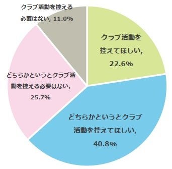 体育系のクラブ活動に所属している子どもの保護者807名を対象に、気温が高い日の子どものクラブ活動について質問すると、63.4%が「クラブ活動を控えてほしい」(クラブ活動を控えてほしい:22.6%、どちらかというとクラブ活動を控えてほしい:40.8%)と回答しました。