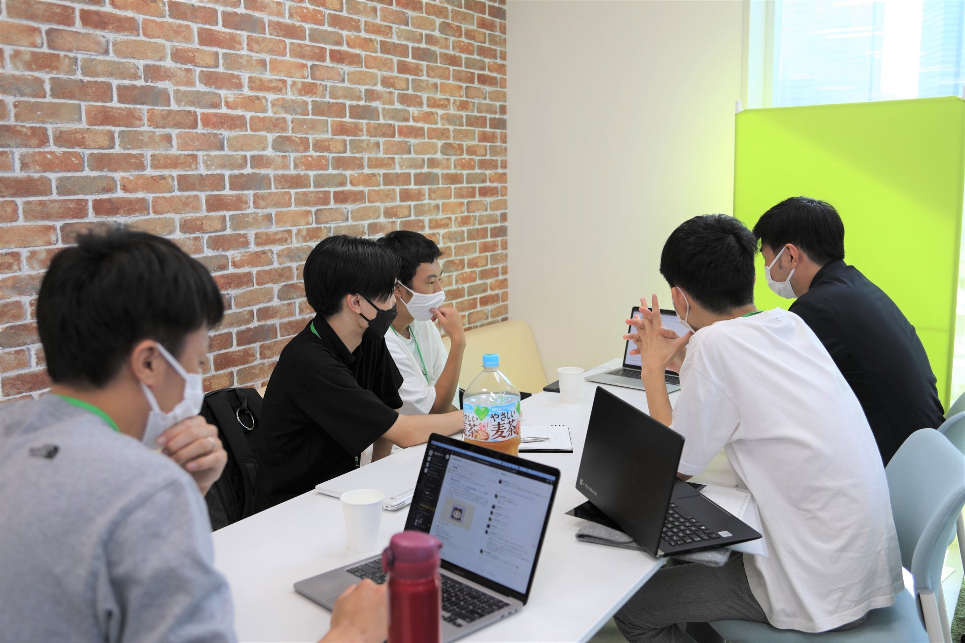 翌日からはチームごとにアイデアを出し、実際の開発作業に移ります。はじめは緊張していた学生も積極的に意見を出し、メンターへの質問も熱心に行っていました。最終日の成果発表に向けて開発を進めます。
