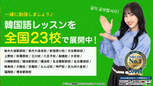 2024年:K Village 韓国語 在籍生徒数・校舎数・講師『業界第一位』に認定