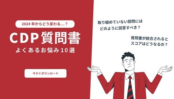 とお悩みの方に向けて、本資料では2024年CDP質問書の構成や回答スケジュール、新設問への対応方法などを紹介いたします。CDP回答担当の方々にお役立ていただける情報をまとめておりますので、是非以下URLから資料をお申し込みくださいませ。
