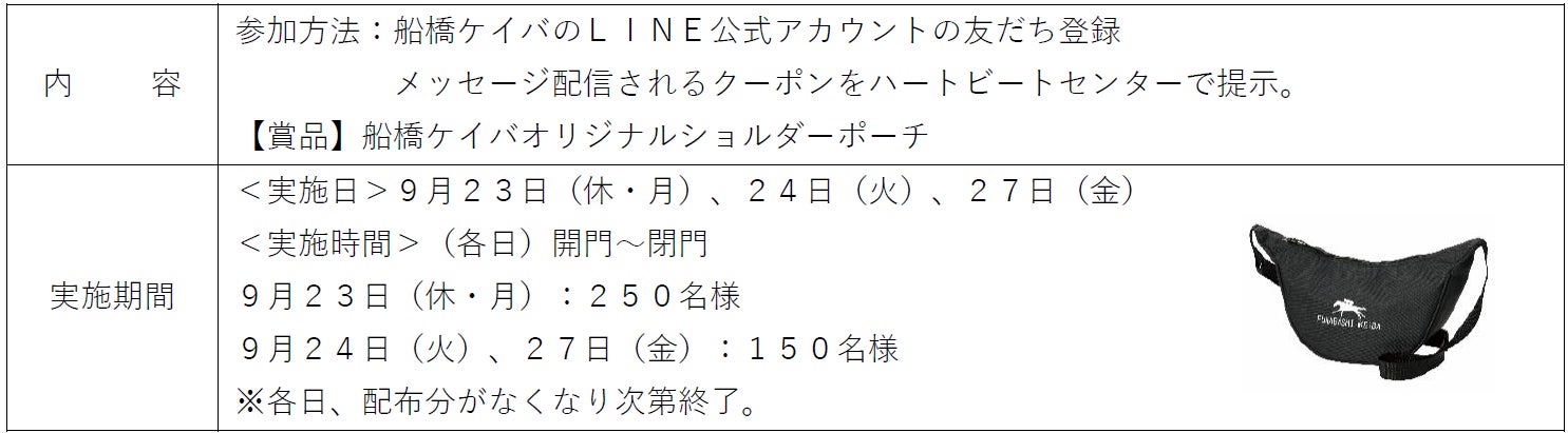 参加方法:当日購入した船橋ケイバの未確定勝馬投票券(1,000円以上 合算可)をお持ちの方
