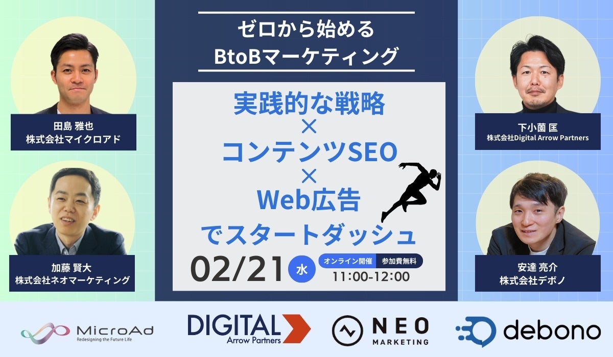 【2/21開催:BtoBマーケティング担当者向けセミナー】4社共催/ゼロから始めるBtoBマーケティング:実践的な戦略×コンテンツSEO×広告でスタートダッシュ