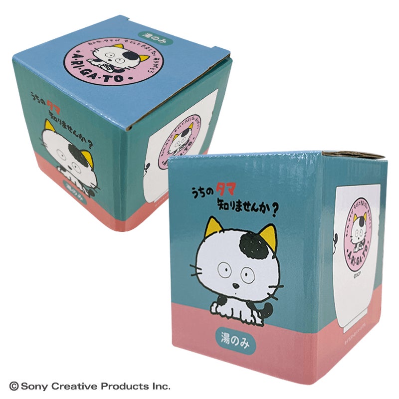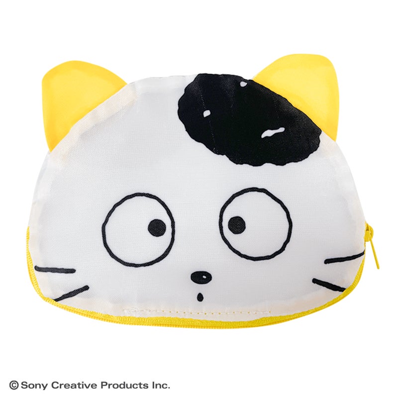 折りたたんでポーチにしまうとタマの顔になる「エコバッグ」、カードや通帳等が収納できる「マルチケース」や「ポーチ」、「湯のみ」の4アイテムです。