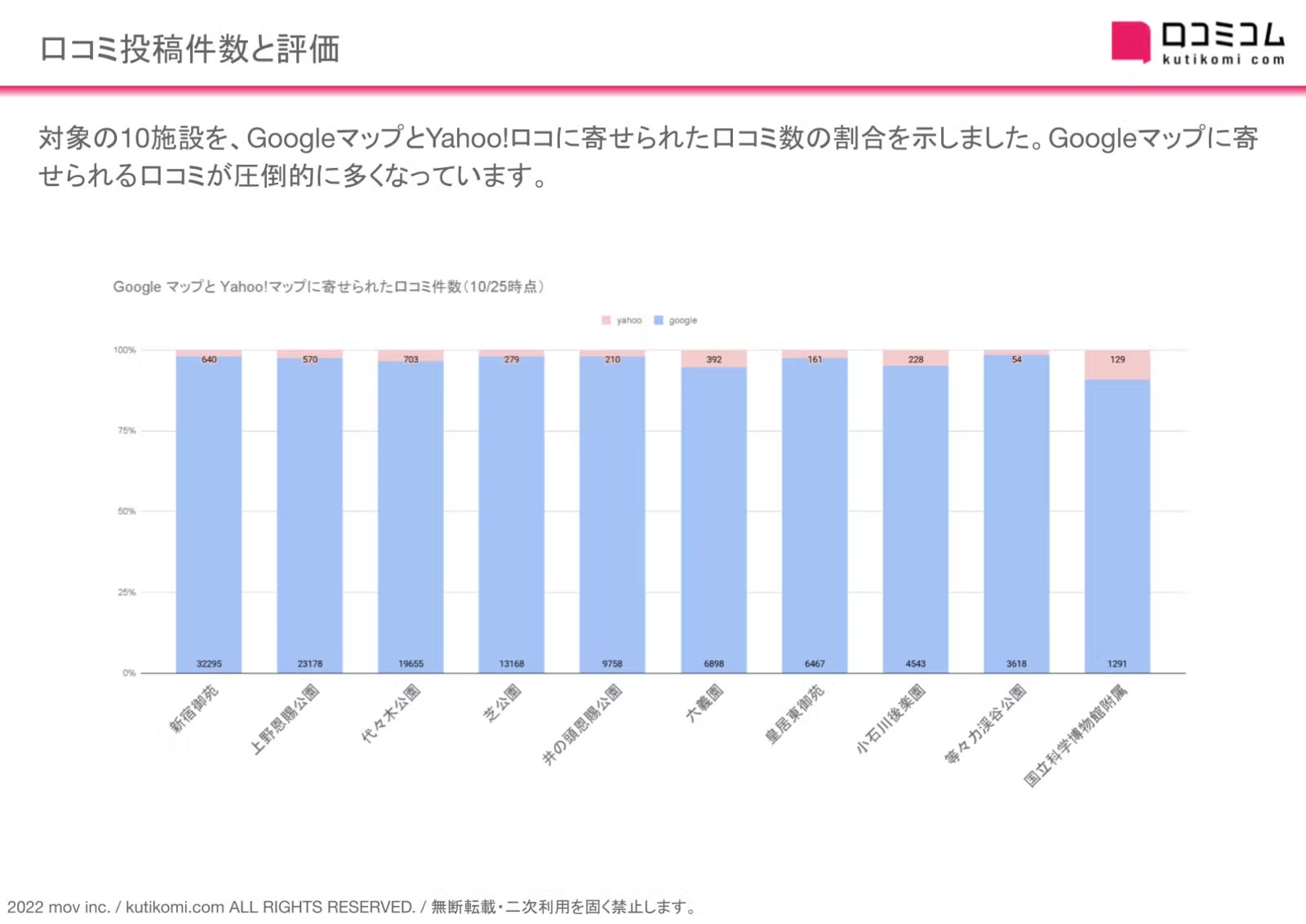 ・公園に寄せられる口コミは、Googleマップに寄せられるものが圧倒的に多いこと