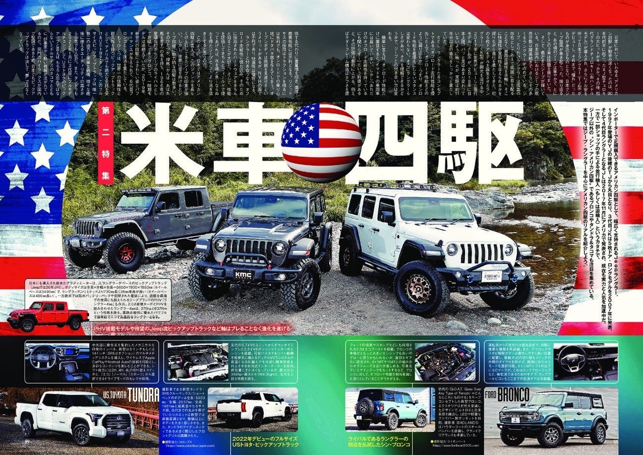 四駆界の王道vs個性派が激突! 16ページ増量で贈る「アウトドア四駆×アメリカン四駆」の2大特集!! レッツゴー4WD6月号は2022年5月6日(金)発売!