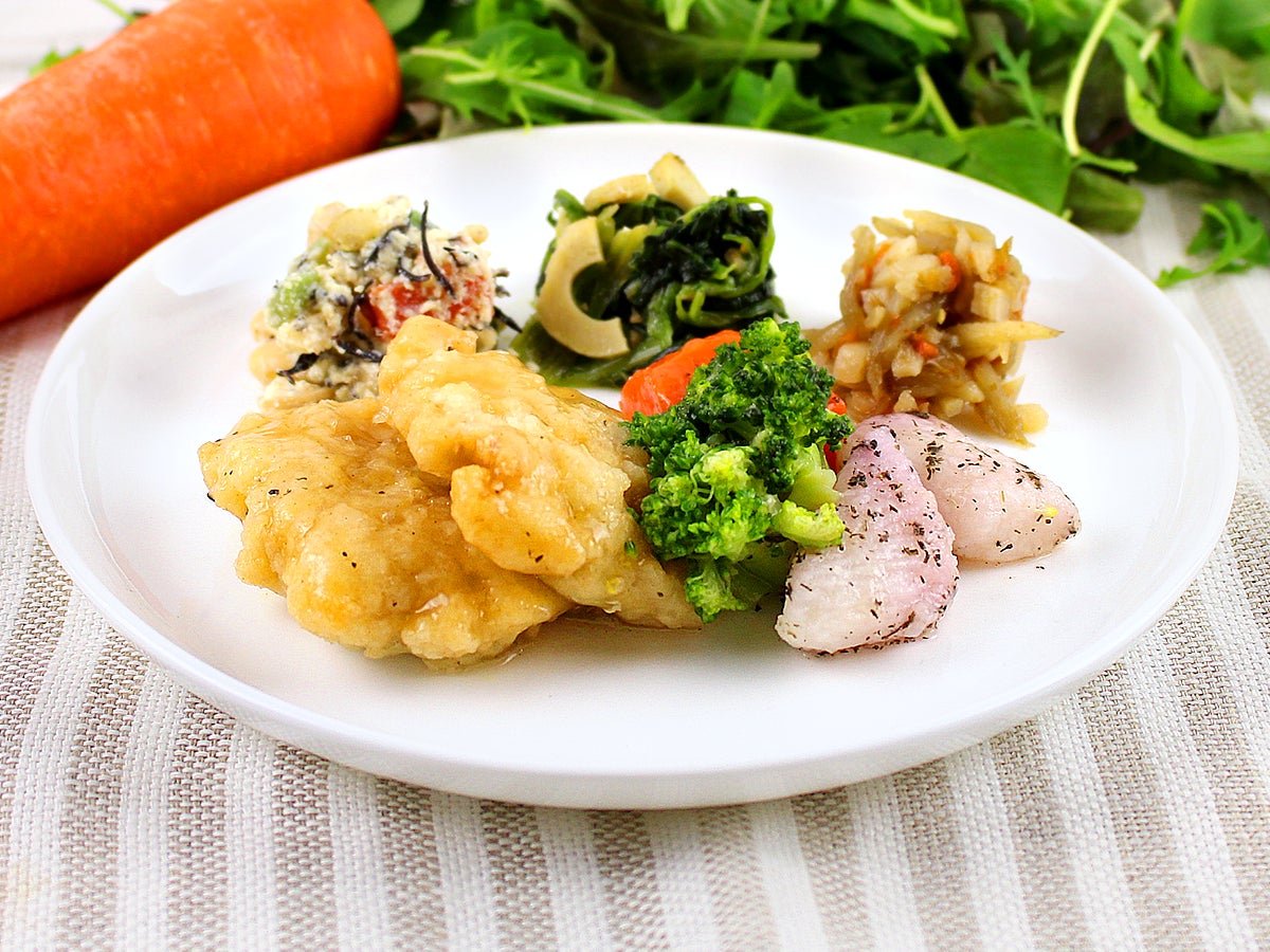 ■梅しそ鶏竜田揚げと3種温野菜