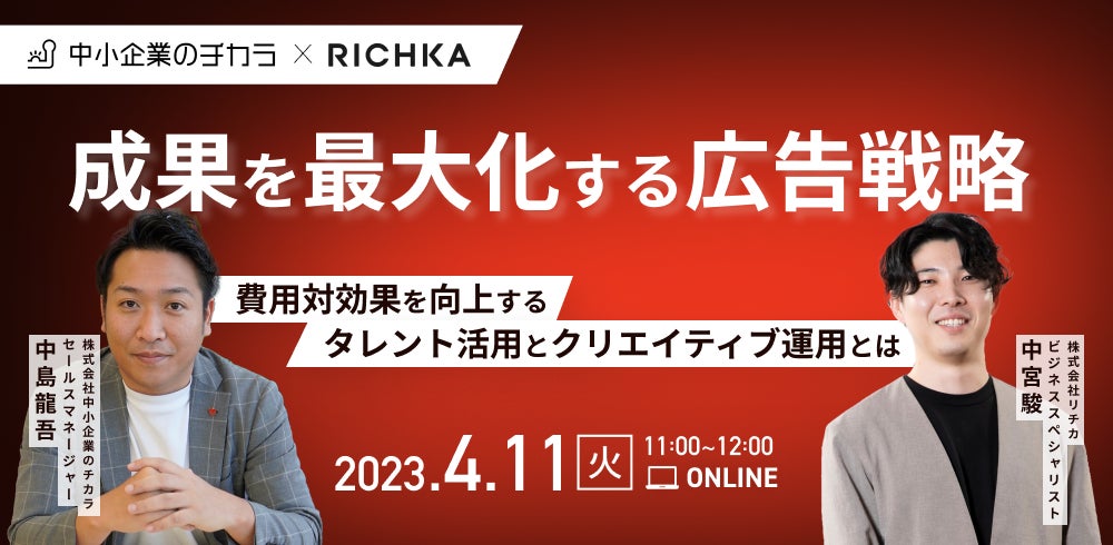 そこで今回は、プロのノウハウを活用したマーケティングコンテンツ生成ツールを展開している(株)リチカをお迎えし、費用対効果を向上させるタレント活用とクリエイティブ運用についてお伝えします。