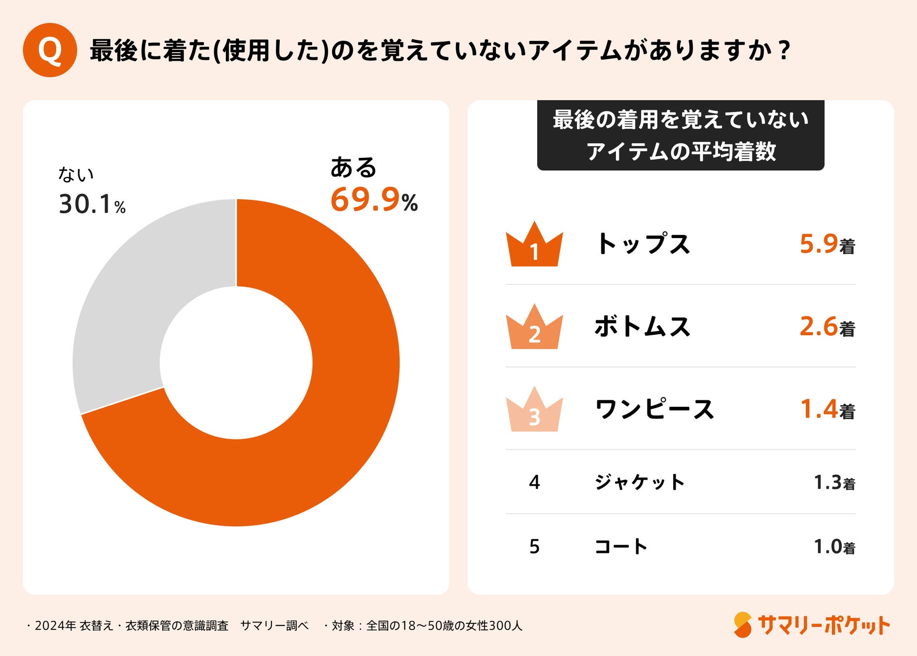 ■ 約7割が所有しているアイテムを把握しつつも、最後に身につけた日を覚えていない衣類がある