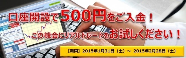 SBI FXトレードが提供する外国為替証拠金取引「SBI FXTRADE」は、2015年1月31日(土)より新規に口座開設頂いたお客様を対象に500円入金企画を実施しました。
