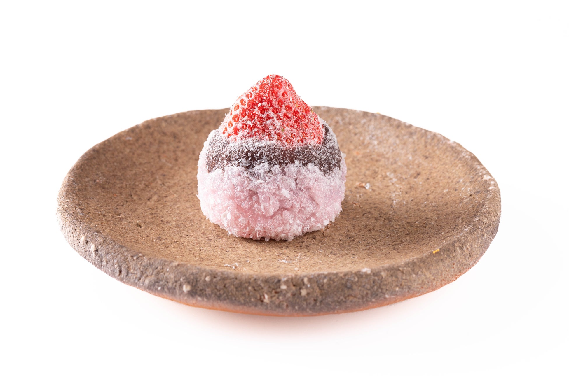 フレッシュな「いちごさん」を、丹波大納言を使用した自家製のこし餡と春を感じるピンク色の道明寺粉で薄く包み込みました。甘さ控えめのさっぱりとした風味のこし餡が、「いちごさん」の果汁たっぷりな美味しさを最大限に引き立てる、「いちごさん」が主役の一品です。