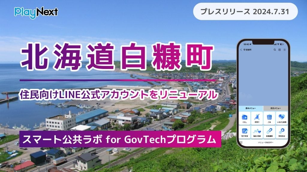 プレイネクストラボ株式会社(本社:東京都品川区、代表取締役:柏 匠、以下 「プレイネクストラボ」)は北海道白糠町(以下「白糠町」)LINE公式アカウントのリニューアルに「スマート公共ラボ for GovTechプログラム」を活用し、2024年7月31日(水)より一般公開したことをお知らせします。