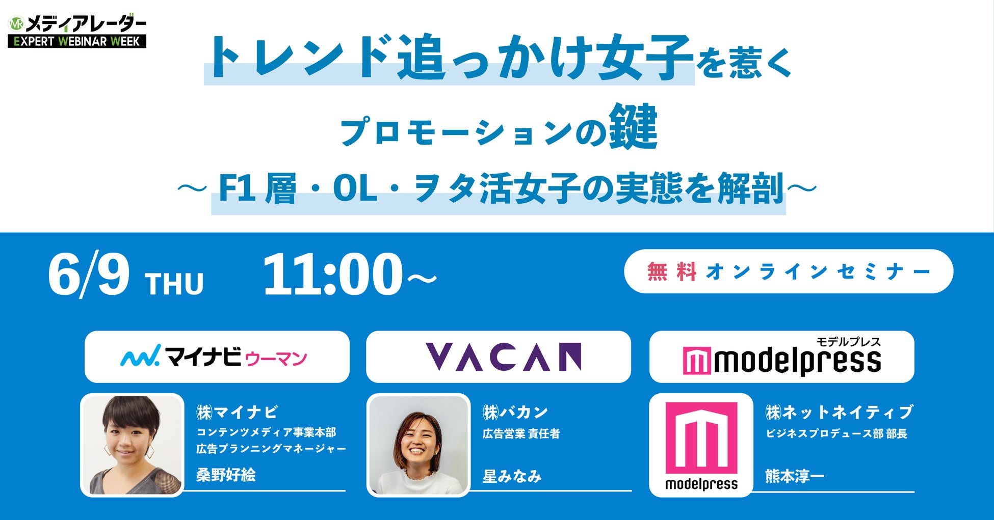 - 「トレンド追っかけ女子を惹くプロモーションの鍵~F1層・OL・ヲタ活女子の実態を解剖~」6月9日(木)11:00~