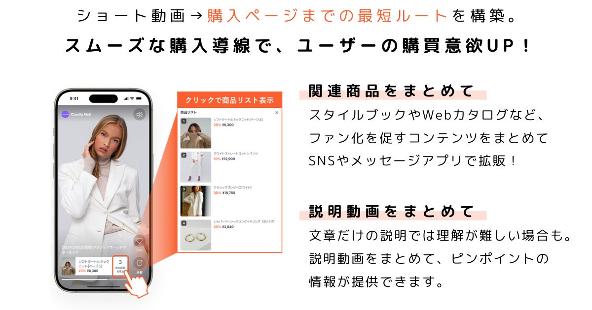 〜高画質な動画をスピーディに読み込み。商品バナーを挿入できるなど、ECサイトに特化したショート動画で滞在率・CVアップへ〜