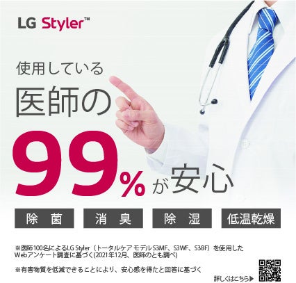 医師の99%が「LG Stylerがあれば安心」と回答!“衣類の衛生”で健康を守る、スチームウォッシュ&ドライ「LG Styler」 医師100名にアンケート調査を実施