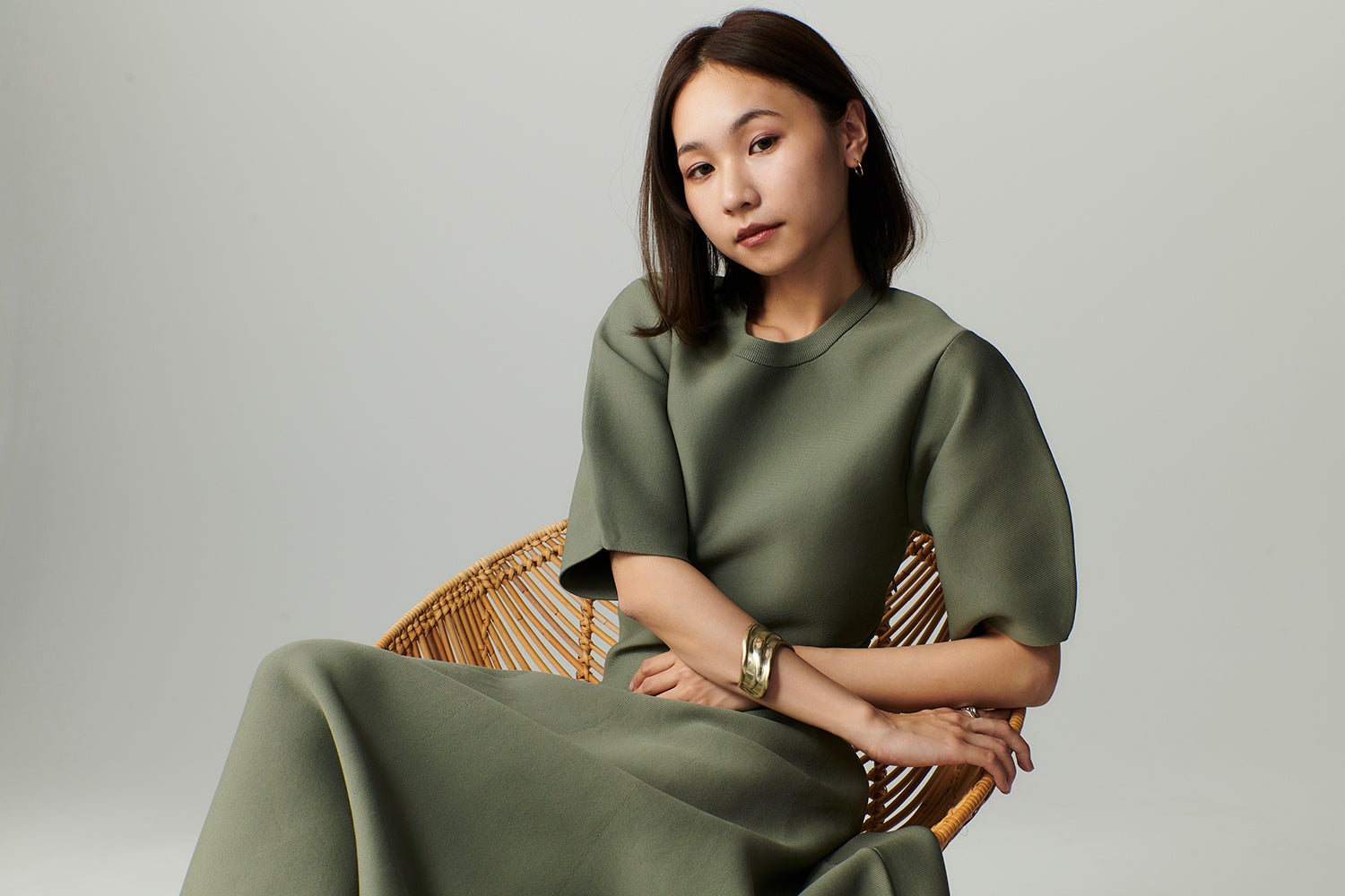 きれいめに仕上がるスラックスのような柔らかさのあるファブリックと、フロントのデザインからボタンやホックを削ぎ落としミニマルな雰囲気に。