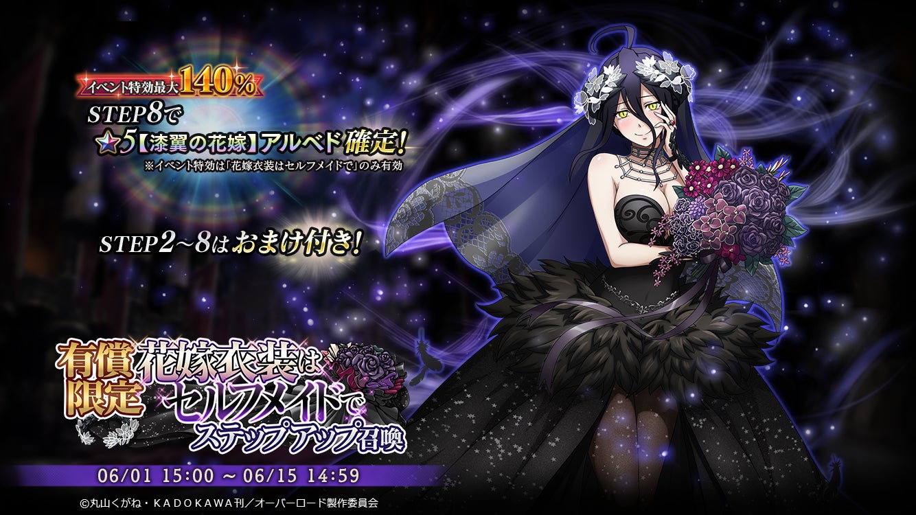 『オーバーロード』原作のスマホゲーム「MASS FOR THE DEAD」でジューンブライドキャンペーン!イベント『花嫁衣装はセルフメイドで』実施!★5【漆翼の花嫁】アルベドが新登場!