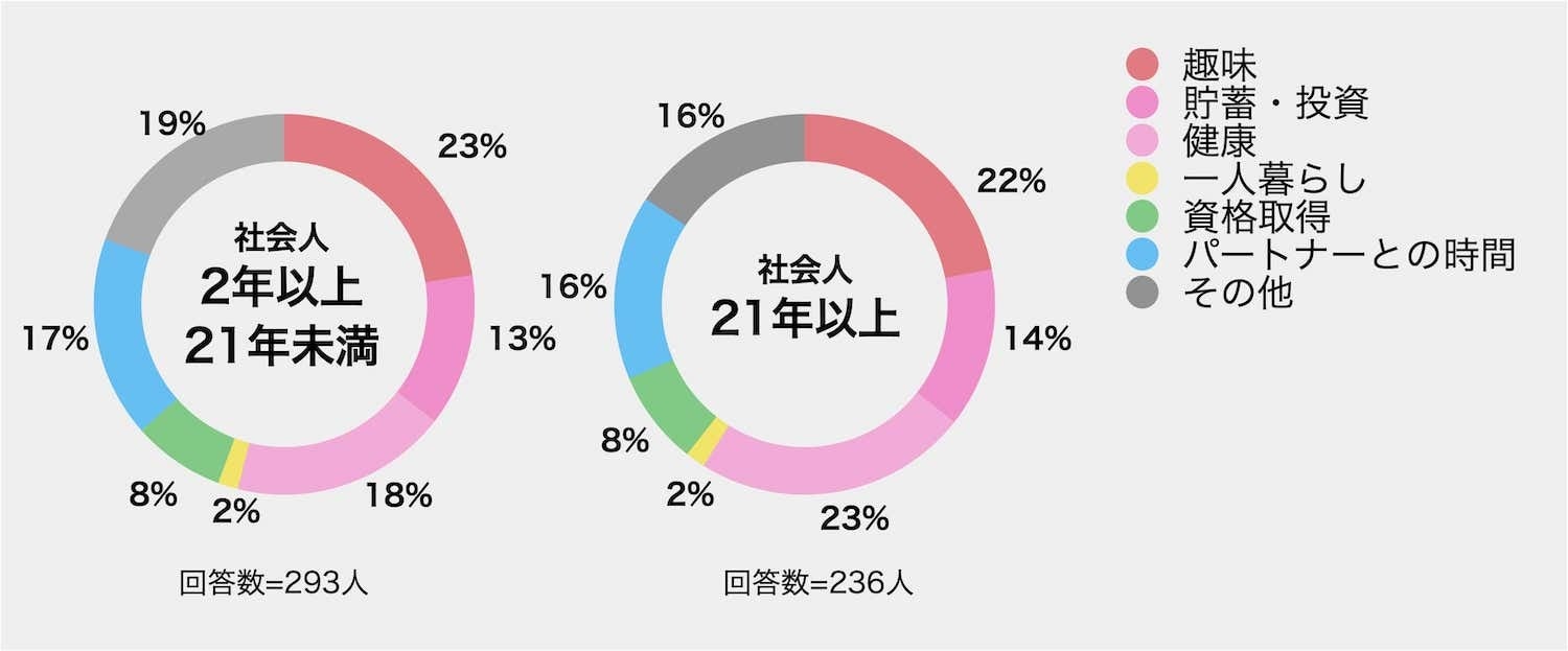 ■社会人2年目以上では「健康」や「パートナーとの時間」の割合が新社会人より多い