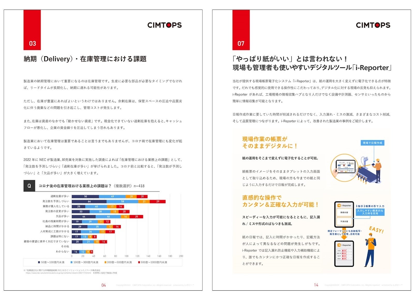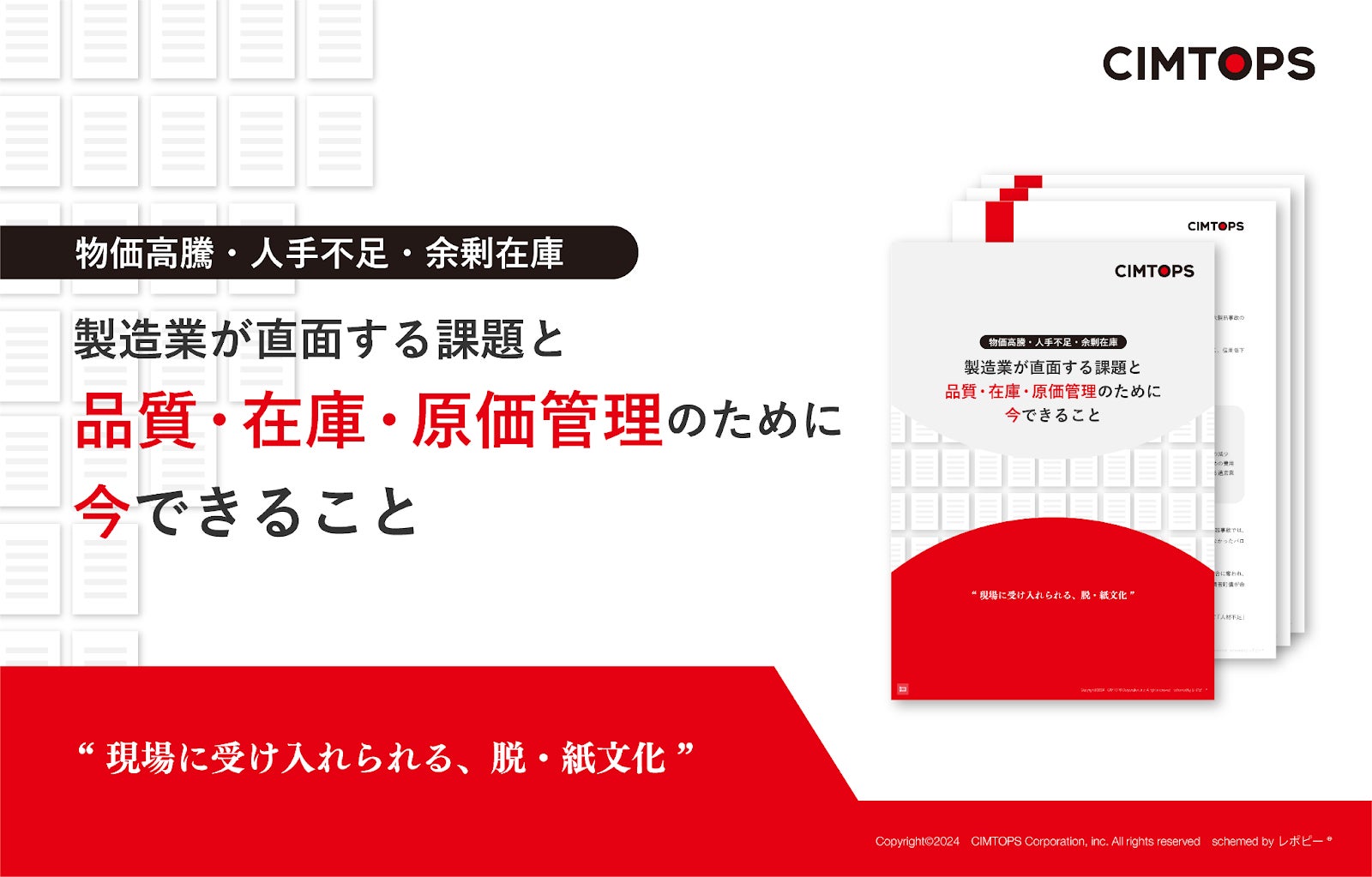 国内シェアNo.1(※1)の現場帳票電子化ソリューション「i-Reporter」を提供する株式会社シムトップス(本社:東京都品川区、代表取締役:水野貴司)は、製造業、現場帳票のDX推進を目的にした解説ガイド「物価高騰・人手不足・余剰在庫|製造業が直面する課題と品質・在庫・原価管理のために今できること」を無料公開しました。