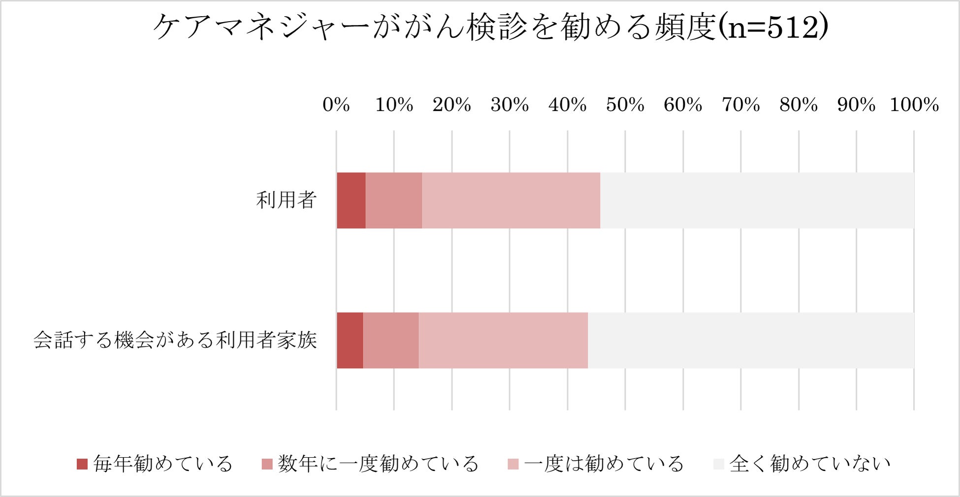 しかし、利用者やその家族にがん検診を勧めているケアマネジャーは少ないことが明らかになりました。