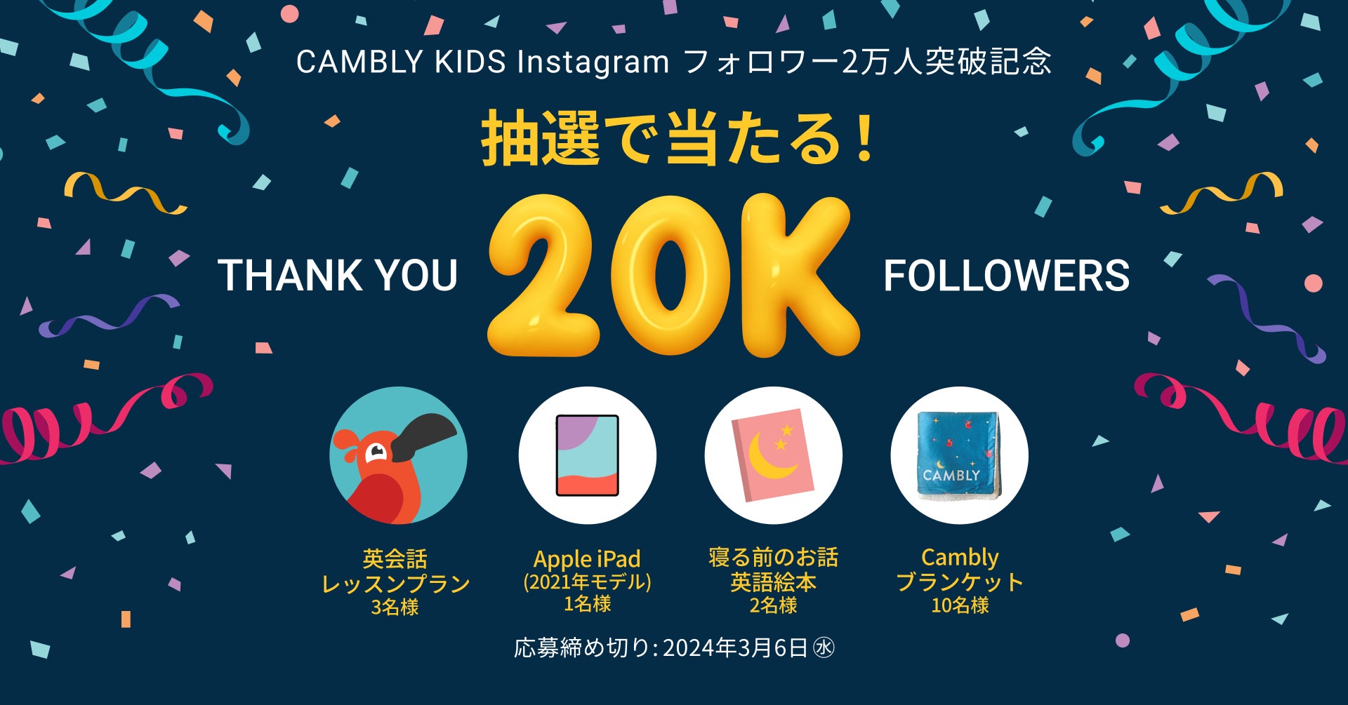 【オンライン英会話 CAMBLY KIDS】Instagramフォローで豪華商品が当たる!フォロワー2万人突破記念プレゼントキャンペーンを開催