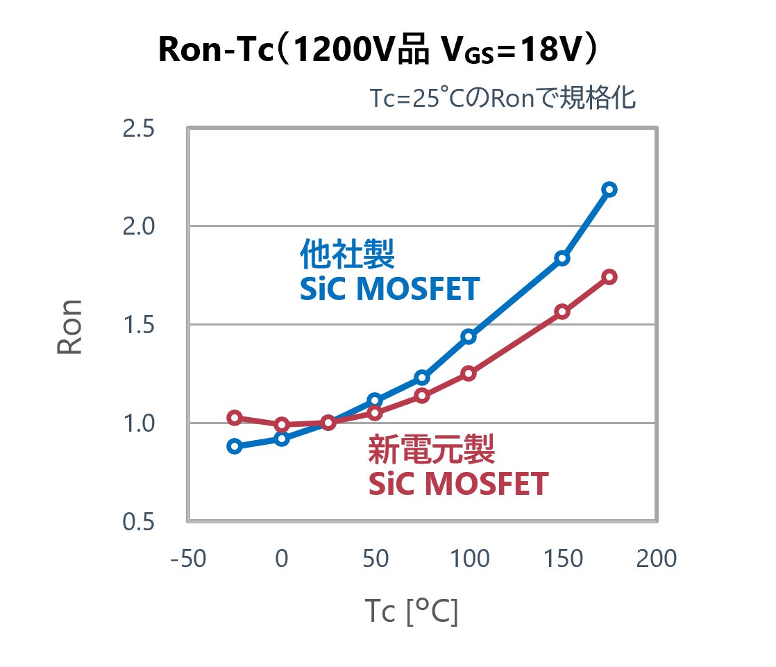 一方で、SiC-MOSFETには、ゲート保証電圧範囲の狭さや、高温時におけるオン抵抗(Ron)の上昇による導通損失の増加といった課題もあります。