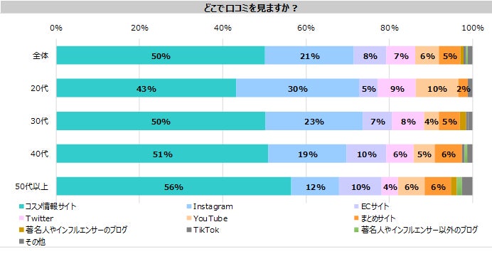 2. プチプラコスメを知るきっかけは20代~40代はSNS、50代以上は店舗。購入先はドラッグストア