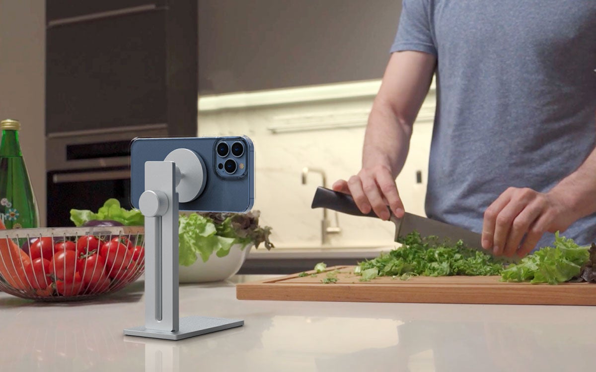スタンドのヘッド部分には、1000回以上の回転にも耐える頑丈なアルミニウム製ボールベアリングを使用。タイピング・動画観賞・テレビ通話時など、さまざまな環境に合わせて最も快適なアングルで使用可能です。縦でも横でも、iPhoneを好みの状態でホールドし、用途に応じて使い分けることができます。