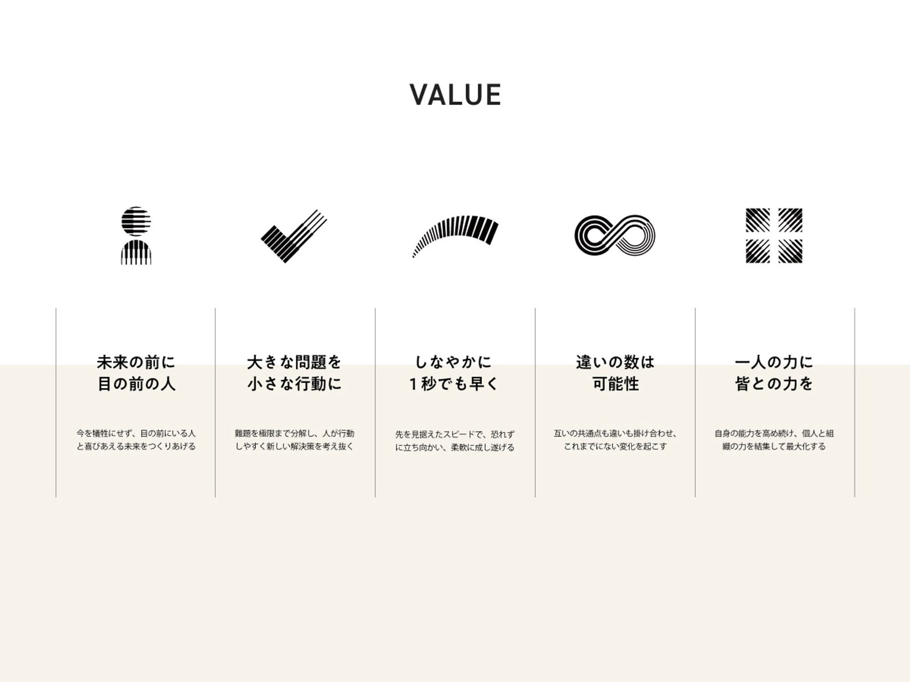企業の脱炭素化や今後新たに現れる未知の課題の解決を加速するために、当社が大切にする価値観と行動について、5つのValueを定義しました。