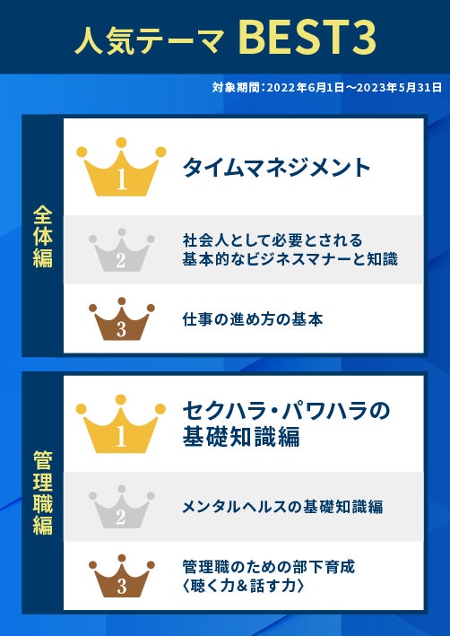 当社は、より多くの企業の組織開発・人材開発を支援すべく、2023年8月に配信ブースの増設を行いました。さらに10月には、学習管理システムを大幅リニューアルし、LEARNING NAVIGATOR®(ラーニングナビゲーター)としてローンチいたします。人事・教育担当のみなさまが、より育成管理がしやすくなるよう、課題に適した研修テーマ選択や育成計画の自動生成、人的資本データの可視化など、学習効果を高める機能を追加し、組織開発・人材開発を最適にナビゲートいたします。