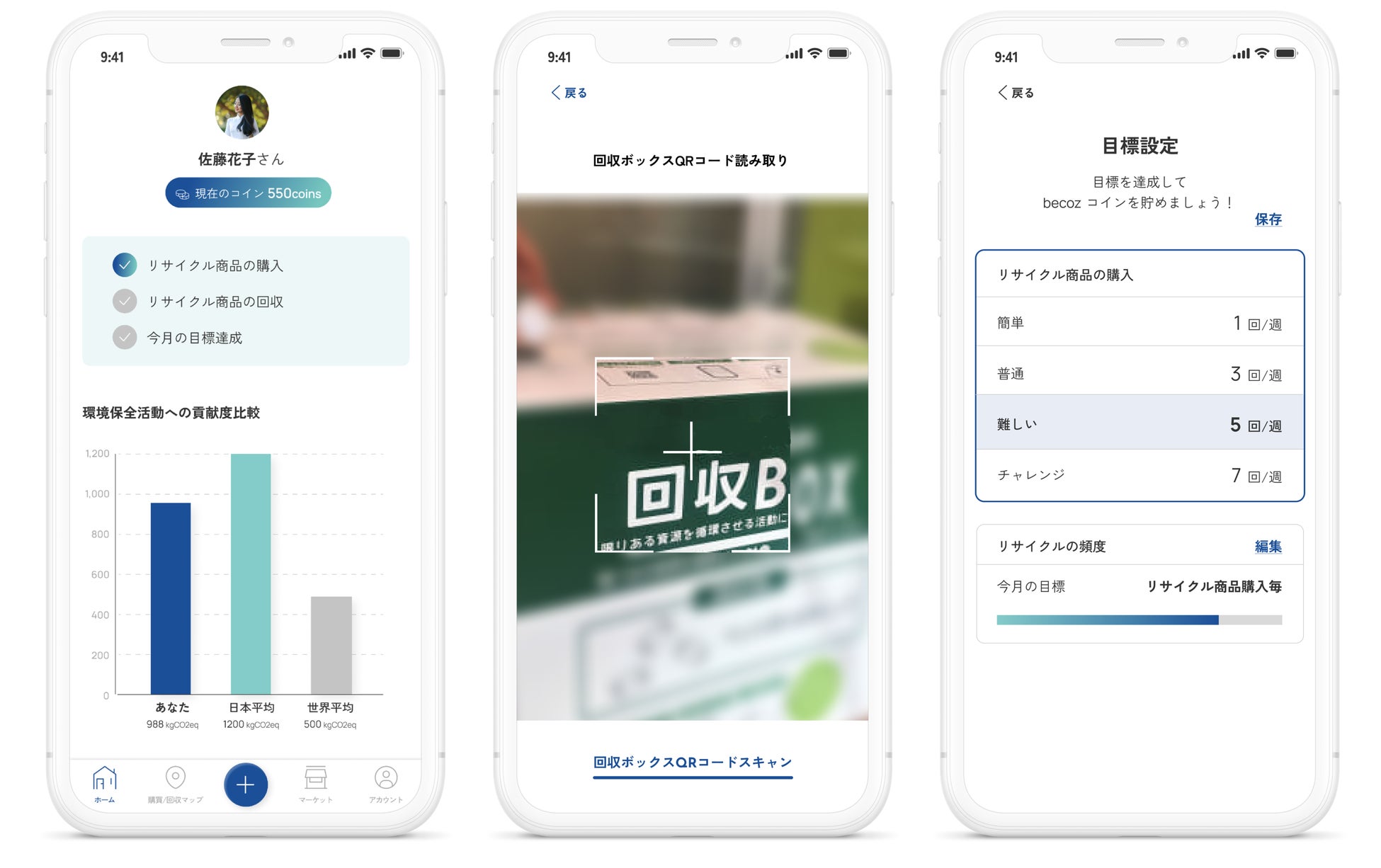 環境に配慮した商品を購入することや、容器の回収に協力することは、生活者が「環境負荷の低い選択をした」「リサイクルに貢献した」という価値を持ちます。同取り組みでは、リサイクル素材を採用した包装容器などに入った商品を購入した場合に、その購買行動をデータとして記録し、個人の貢献を「環境価値」としてアプリケーション上で可視化します。