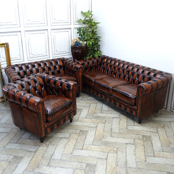 - 総本革チェスターフィールドソファ