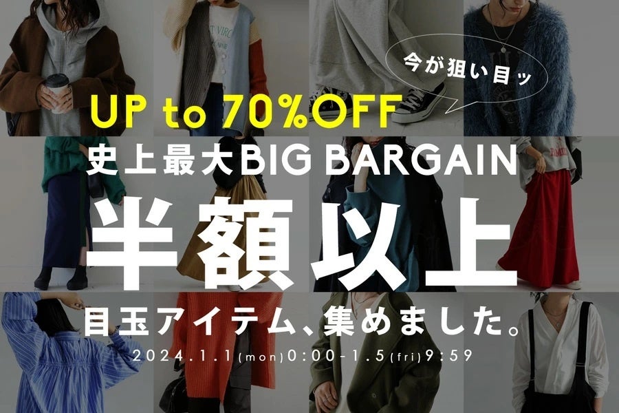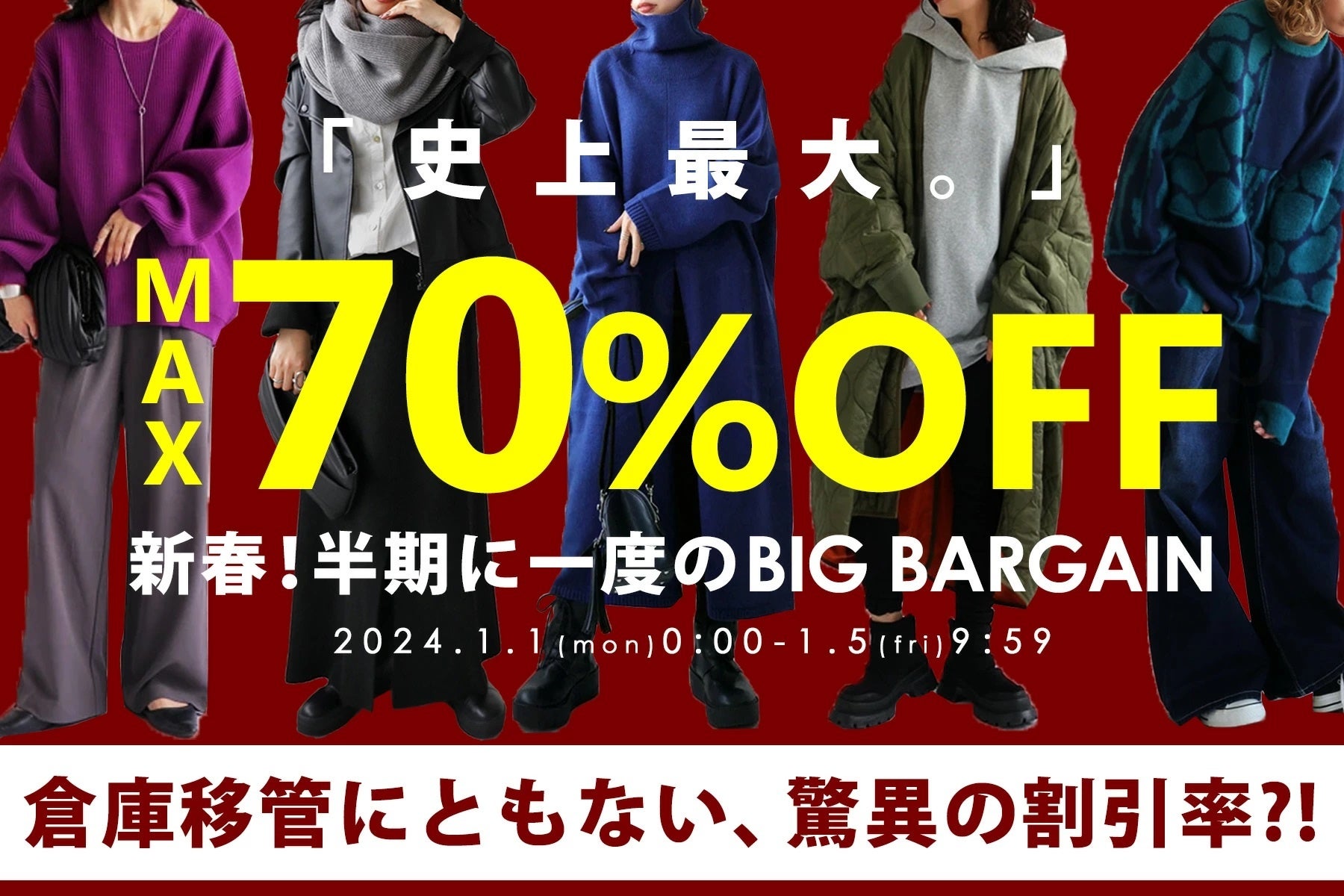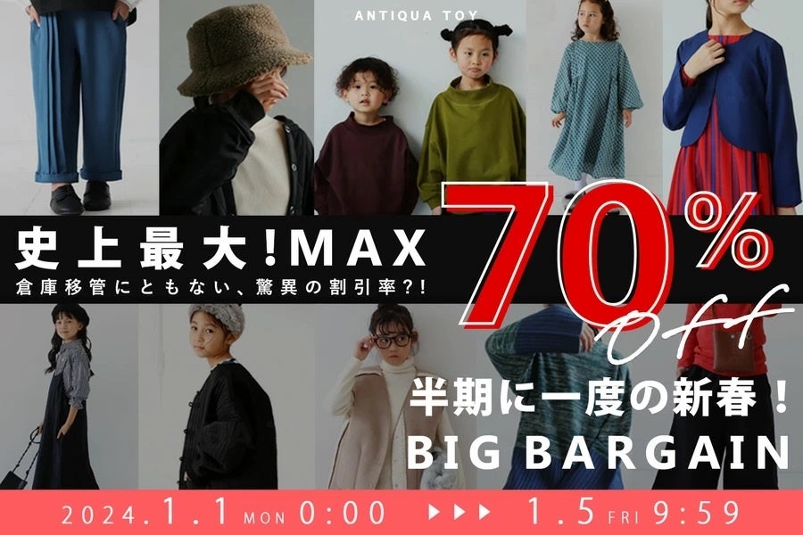 antiqua史上最大\新春!半期に一度のBIG BARGAIN開催!/2024年1月1日(月)0:00スタート!!
