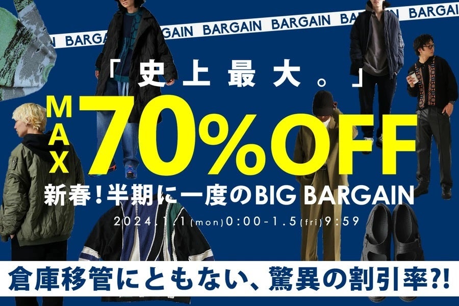 今すぐ使えるモノから春先まで使えるitemまで盛り沢山です!!トレンドアイテムがまさかのプライスに?! 欲しかったあのアイテムがBIG BARGAINでお得にお買求め頂けます。