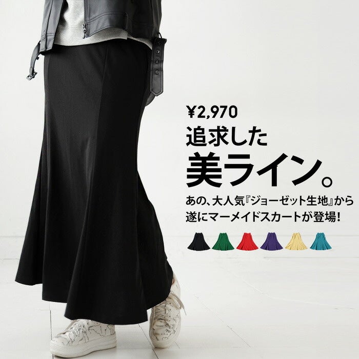 上質ジョーゼット生地のカラバリ豊富な『美ライン』マーメイドスカートが…