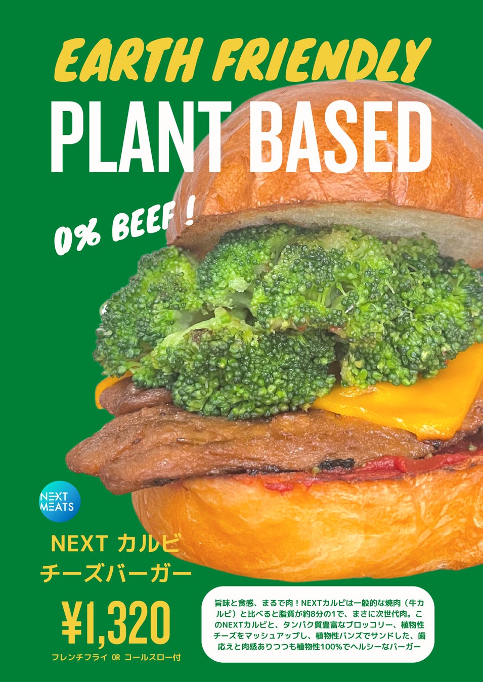 ネクストミーツ株式会社(本社:東京都新宿区、代表取締役:佐々木英之、以下「当社」)は株式会社USTUS(所在地:東京都新宿区、代表取締役:新田拓真)が運営するバーガーショップ「BURGERS TOKYO」とのコラボレーション1周年を記念して、バーガー1食が飢餓に苦しむ人々への1食の給食支援*²に繋がる、地球にも人にもやさしい植物性100%*¹のコラボレーションバーガー第2弾「NEXTカルビチーズバーガー」を、8月1日(月)からBURGERS TOKYOで提供開始いたします。