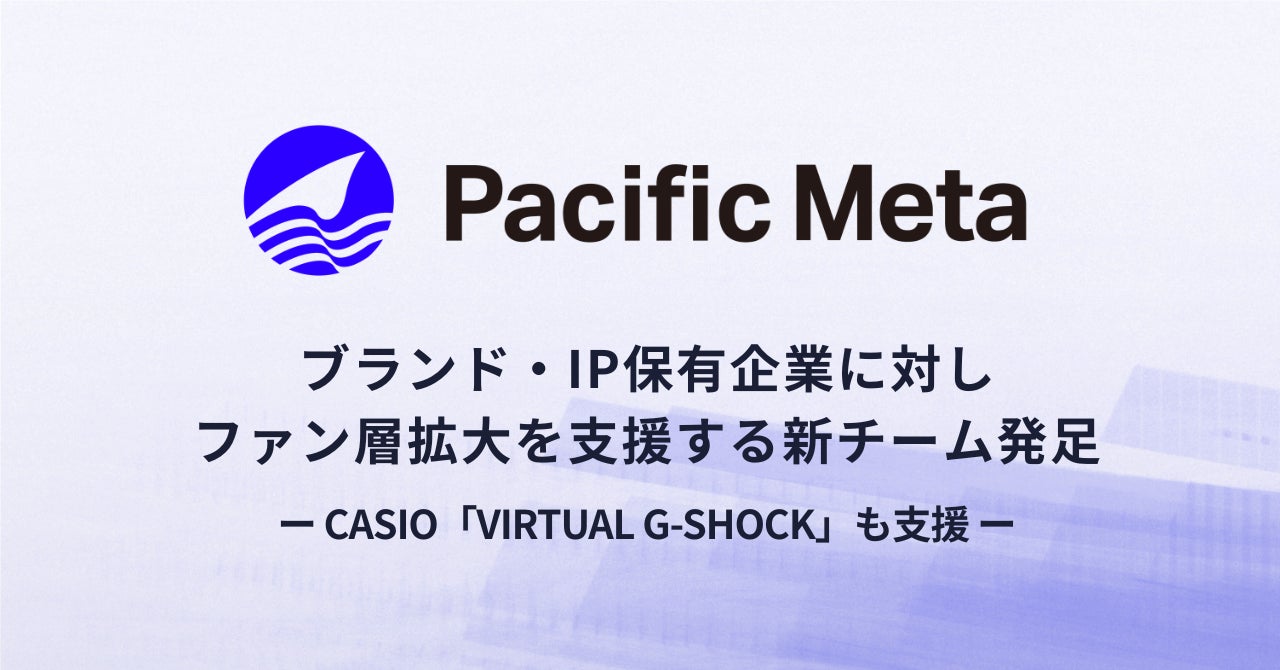 Web3領域でアクセラレーター事業を展開する株式会社Pacific Meta(本社:東京都港区、代表取締役:岩崎翔太、以下「当社」)は、2025年6月30日、ブランドを含むIPを活用したビジネス展開の支援を強化すべく、新チームを立ち上げました。本チームは、キャラクターなどのいわゆるIPコンテンツのみならず、ファッションや食品など様々な領域のメーカーが生み出してきた「ブランド」もIPと捉え、これらのWeb3領域への進出を通じ、Z世代やデジタルネイティブ世代を中心とした新たな顧客層とのコミュニケーション機会の創出を後押しします。