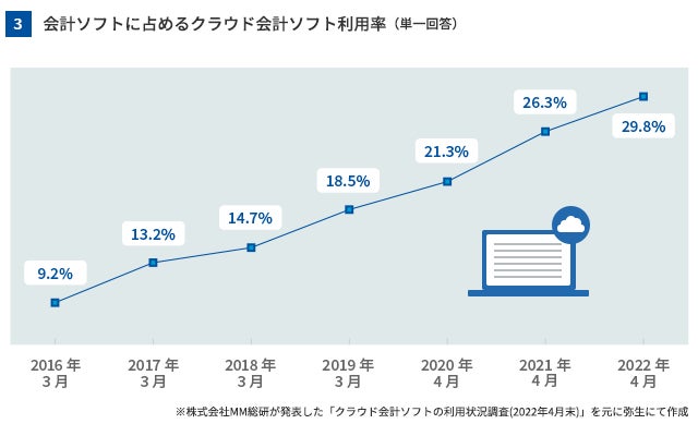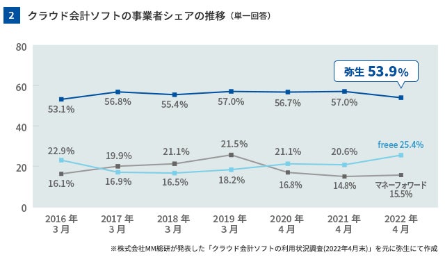 弥生株式会社(本社:東京都千代田区、代表取締役社長:岡本 浩一郎)は、株式会社MM総研が2022年5月25日に発表した「クラウド会計ソフトの利用状況調査(2022年4月末)」において、個人事業主のクラウド会計ソフト市場における利用シェアNo.1を獲得しました。当該調査におけるシェアNo.1の獲得は、7年連続となります。