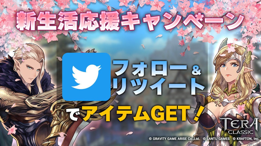 グラビティゲームアライズ株式会社(所在地:東京都中央区)は、スマートフォン・タブレット向けオンラインRPG『テラクラシック(TERA CLASSIC、通称:テラクラ)』において、本日2022年3月31日(木)より、抽選で200名様に無償ブルーダイヤが当たるTwitterフォロー&リツイートキャンペーンを開始しました。