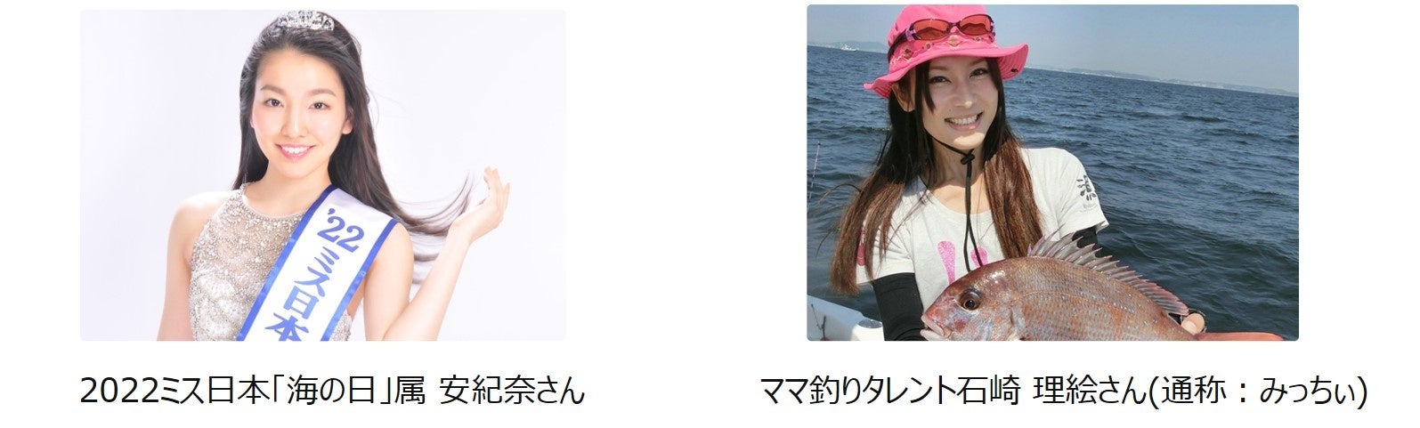 2022ミス日本「海の日」属 安紀奈さんと、ママ釣りタレント石崎 理絵さん(通称:みっちぃ)の2名が、ゲストサポーターとして応援に駆け付けます。稚魚放流体験学習会やkidsプログラムサポートなど、マリンカーニバル神戸2022を応援いたします。