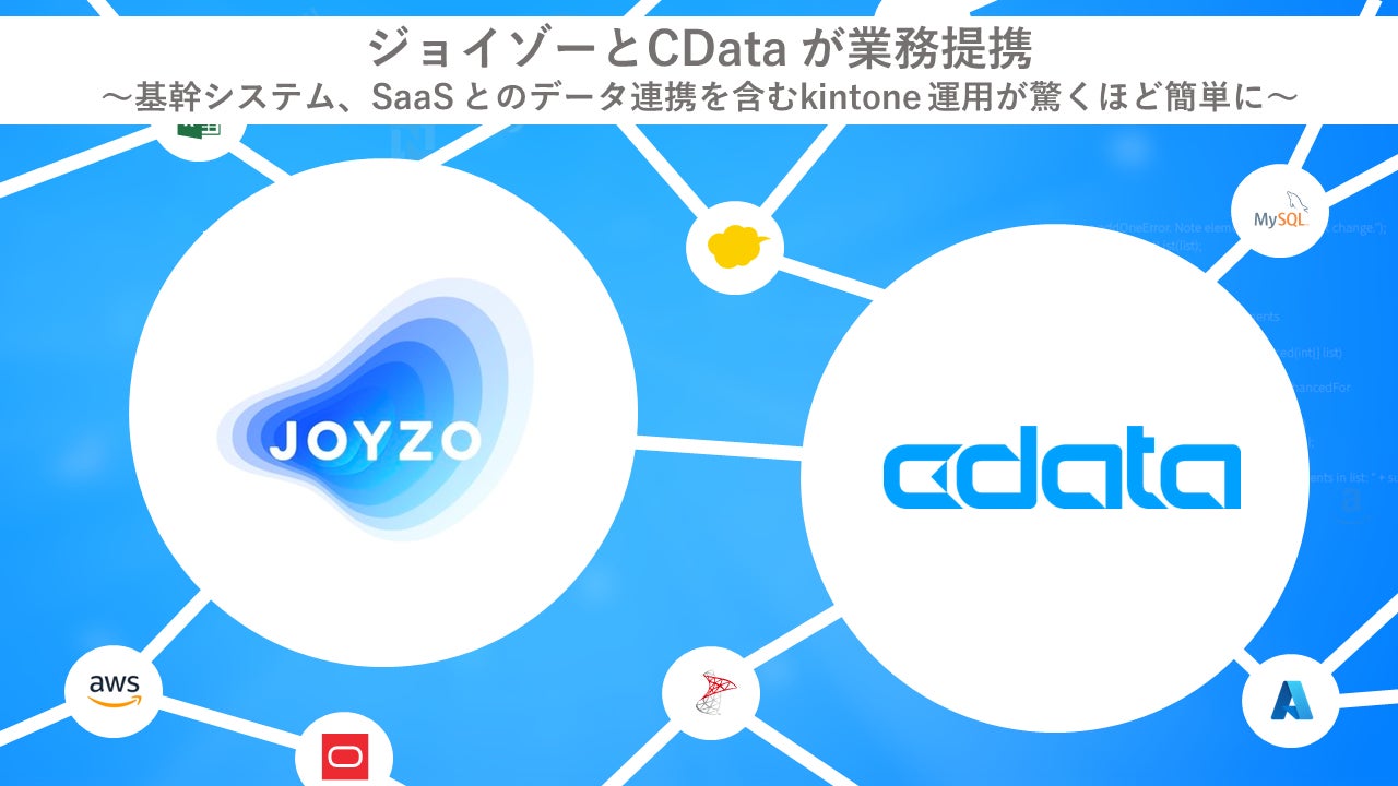 kintone を含むSaaS・オンプレミスデータ連携向けのツールを提供するCData とkintone 導入のプロフェッショナルのジョイゾーが協業し、ユーザーの既存の基幹システムや他の業務SaaS との連携を含むkintone 運用において、kintone 側での連携データを最大限に活かせるアプリ設計までをシームレスにサポートします。