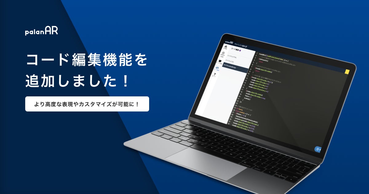 ARサービスを提供する株式会社palan (本社:東京都渋谷区、代表取締役:齋藤 瑛史)が、誰でも簡単にノーコードでARが作成できるサービス「palanAR(パラナル)」において、より複雑な表現やカスタマイズを可能とするコード編集機能を追加致しました。