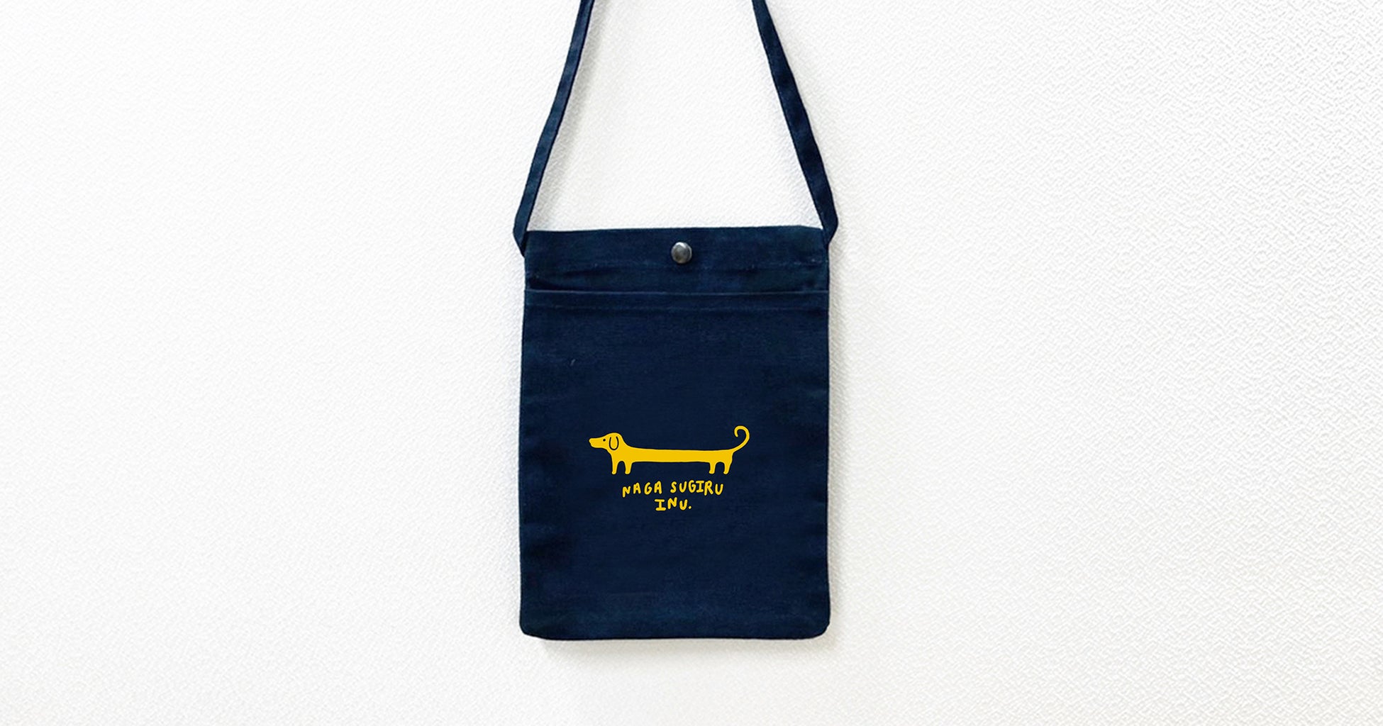 《ナガスギルイヌ》びよーんと胴が伸びた、人気キャラクター「ナガスギルイヌ」をシンプルに配置したデザインです。