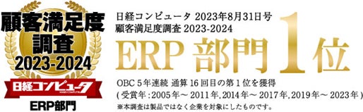 OBC、『日経コンピュータ 顧客満足度調査2023-2024』の「ERP部門」で5年連続、通算16回目の第1位を獲得