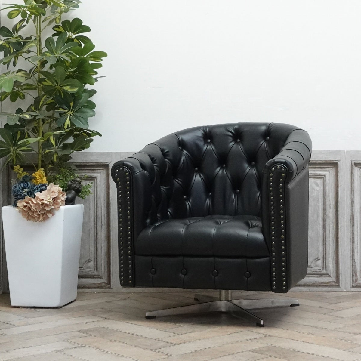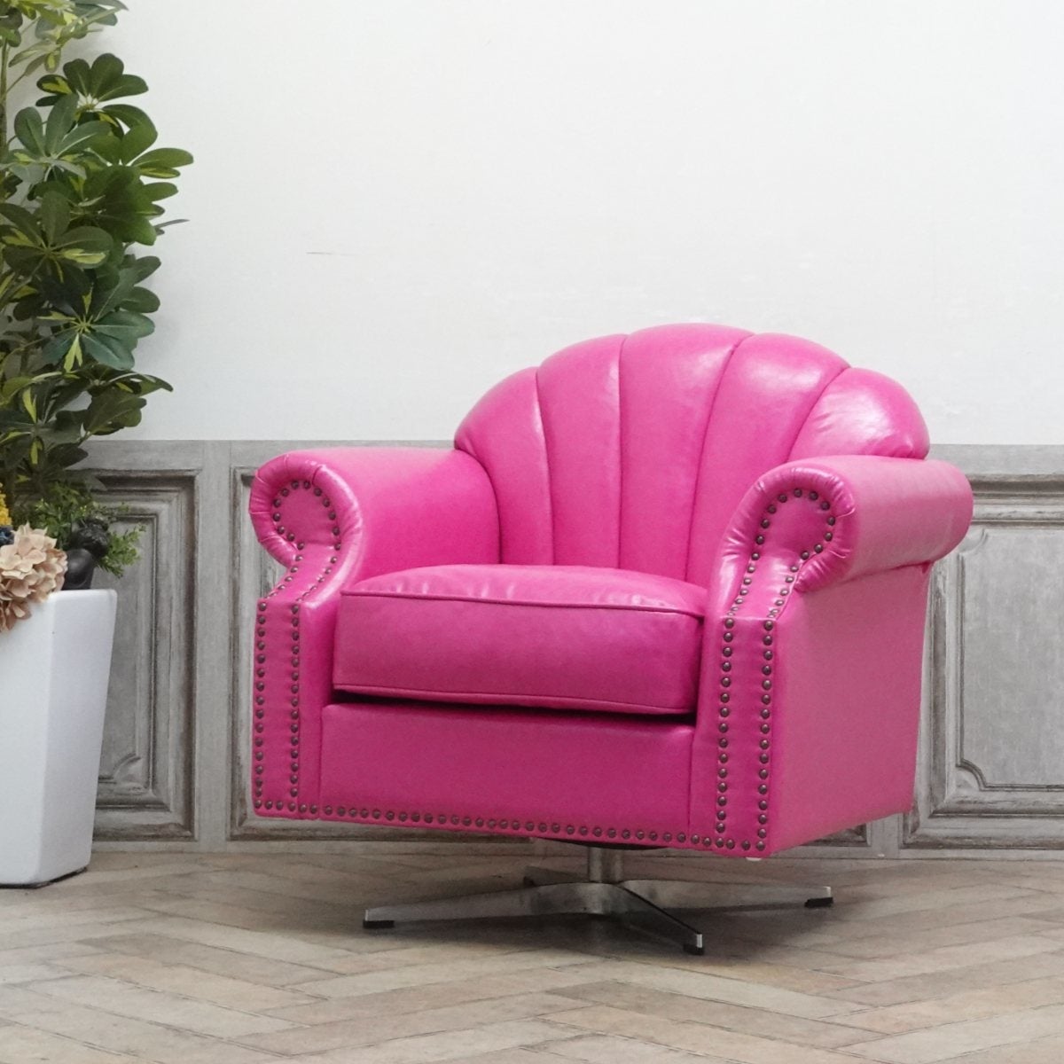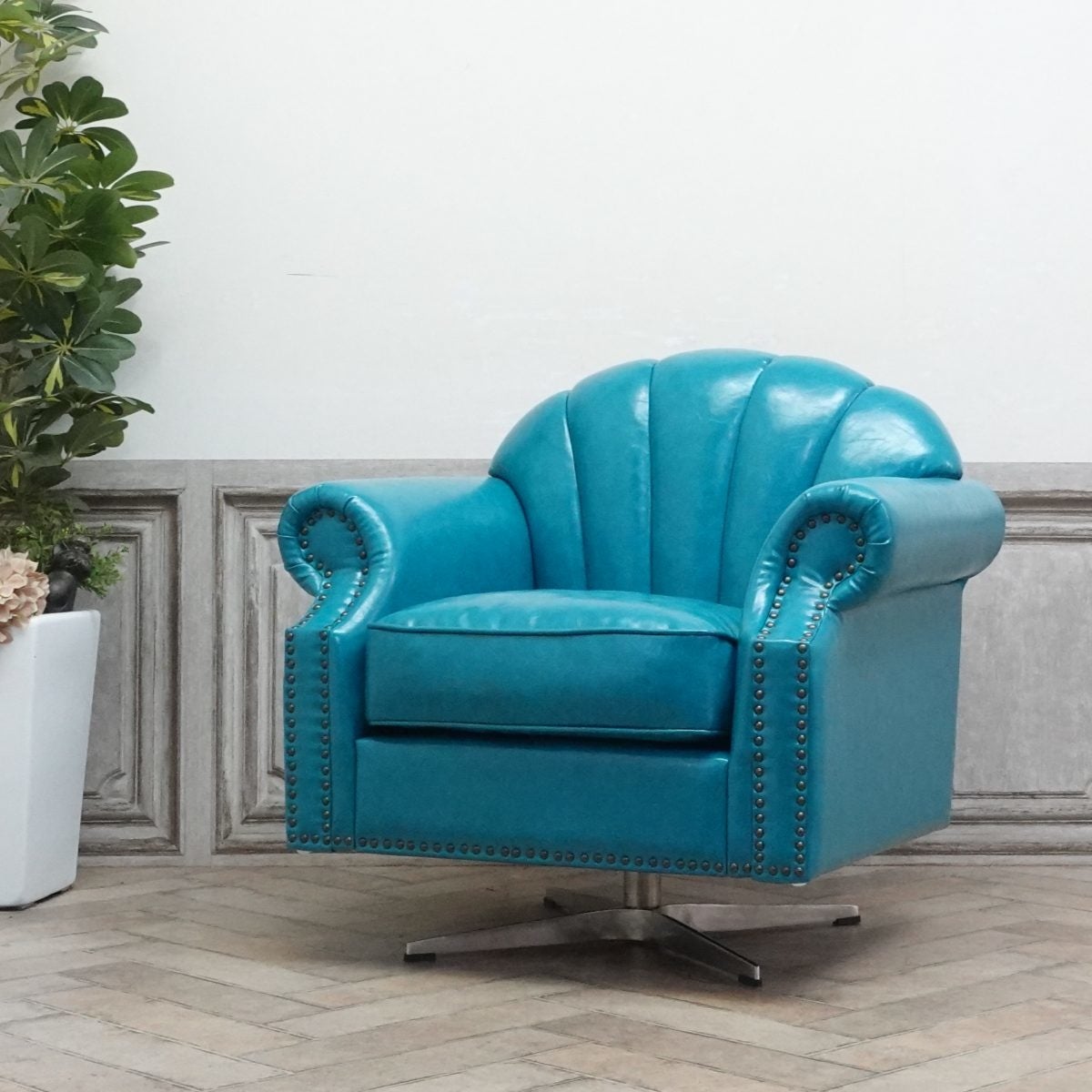 モダンなシルエットのシェルファとメタリックフットの相性はバツグン。