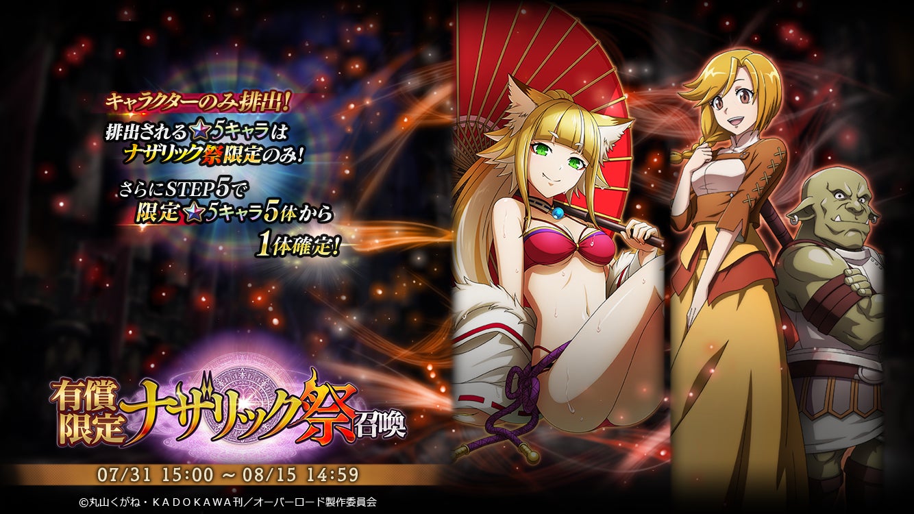 ナザリック祭の★5キャラクターを入手できるこの機会をぜひご利用ください!