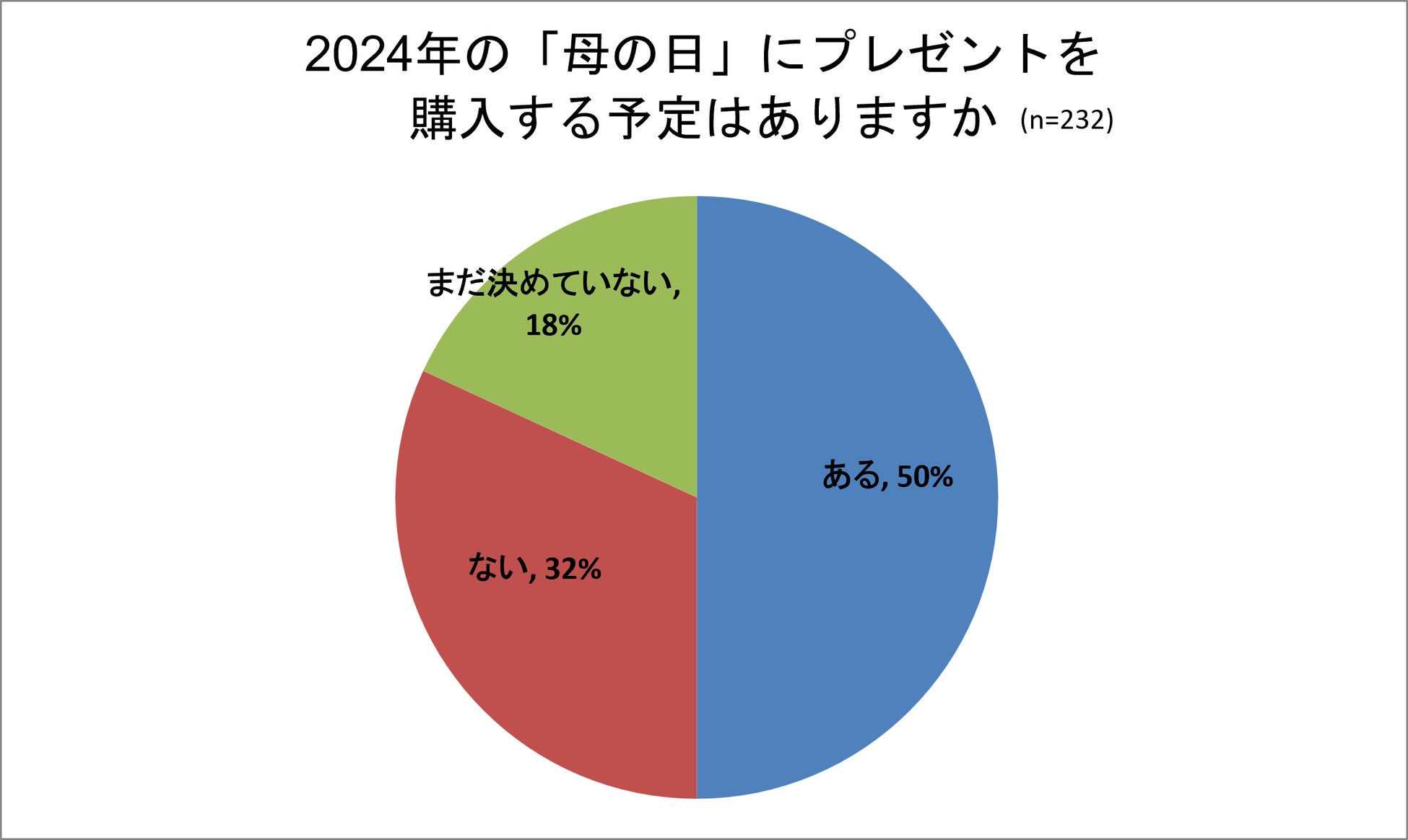 ・2024年「母の日」、プレゼントを購入する予定は50%