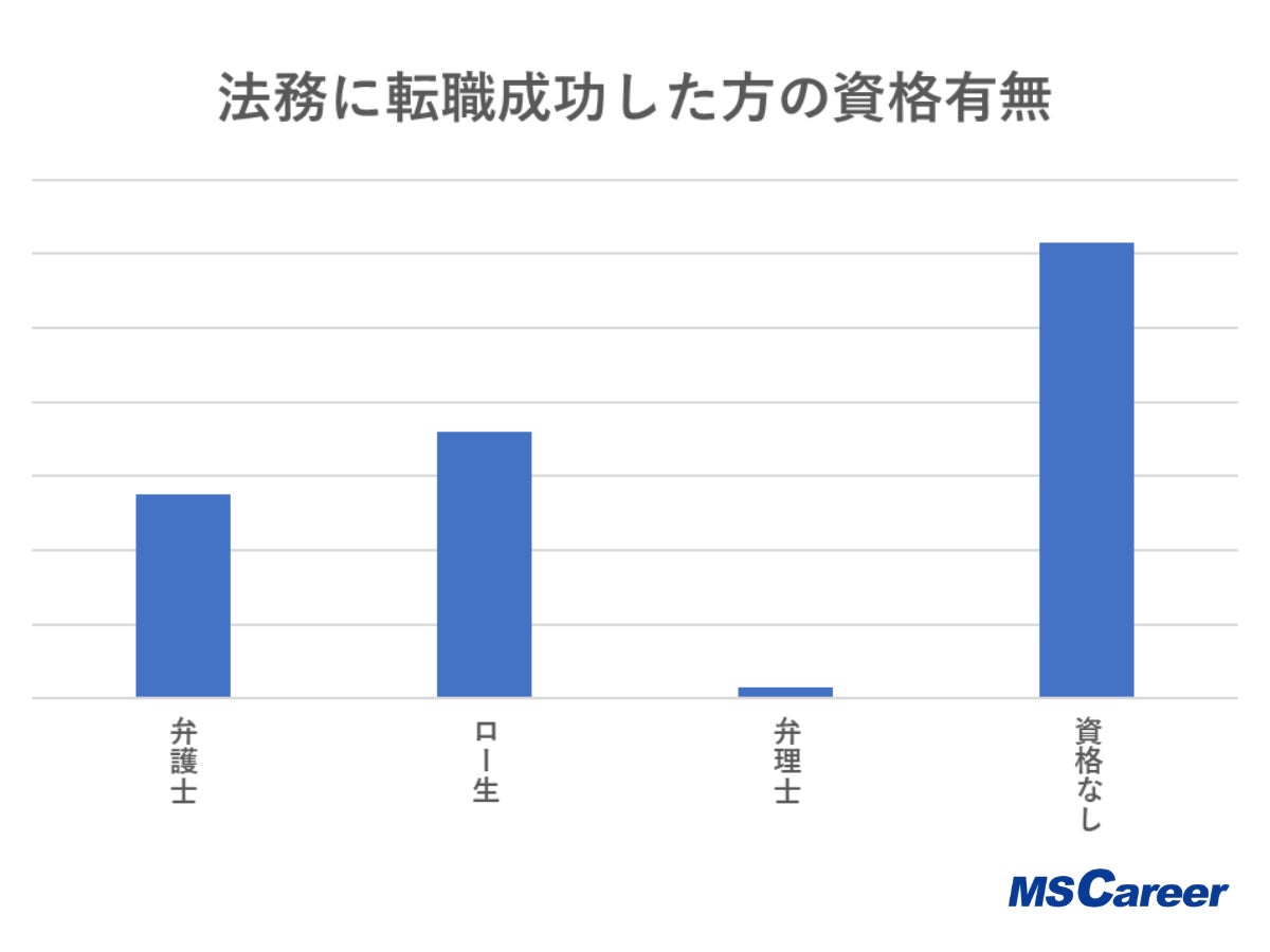 法務は他の職種の中でも専門的な職種ではありますが、企業法務であれば無資格での採用を行っている企業も多い為、 資格なしで転職に成功している方が最も多いようです。